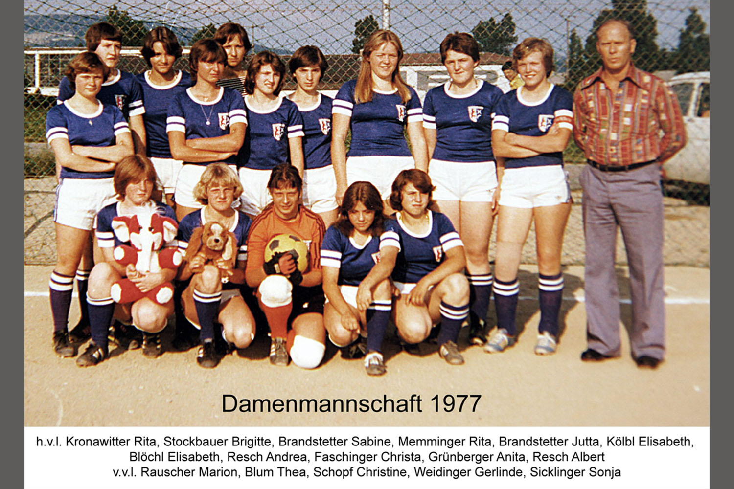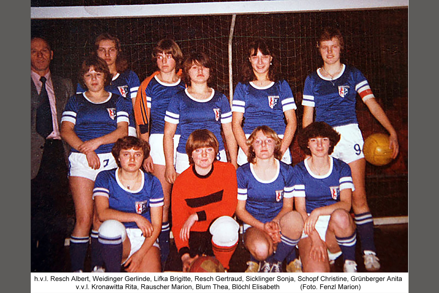 1978 - Die Fußballamazonen des FC Büchlberg erkämpften am Sonntag in der Fürstensteiner Dreifachturnhalle einen stolzen Erfolg. Sie wurden niederbayerische Meister im Hallenfußball. 38 Mann¬schaften spielten diesmal unter der Regie von Kreisspielwart Urlberger um die Meisterschaft. Die drei Gruppensieger in mehreren Vorrunden kamen in das Endturnier in Fürstenstein, wo 38 Spiele bestritten werden mußten, bis der Sieger feststand. Der TSV Preying, ein echter Senkrechtstarter im Damenfußball, erreichte mit dem FC Büchlberg dann das Endspiel, das an Spannung kaum zu überbieten war. Erst die Verlängerung brachte die Entscheidung durch ein Tor, das Sonja Sicklinger erzielte.